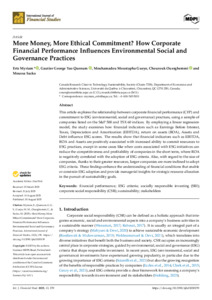 Ertz Myriam, Quenum Gautier Georges Yao, Gueye Mouhamadou Moustapha, Ouerghemmi Chourouk et Sacko Moussa. (2025). More Money, More Ethical Commitment? How Corporate Financial Performance Influences Environmental Social and Governance Practices. International Journal of Financial Studies, 13, (3), p. 1-20.