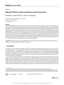 | Mots-clés: | Behavioral intention to reduce food waste · Individual attitude · Environmental knowledge · Awareness of consequences · Environmental consciousness · Germany |