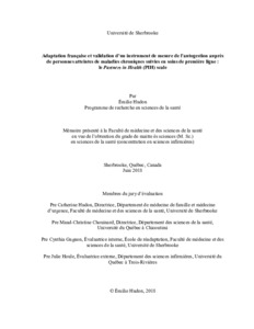 Hudon Émilie. (2018). Adaptation française et validation d’un instrument de mesure de l’autogestion auprès de personnes atteintes de maladies chroniques suivies en soins de première ligne : le Partners in Health (PIH) scale. Mémoire de maîtrise, Université de Sherbrooke.