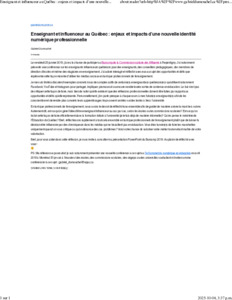 Dumouchel Gabriel. (2019). Enseignant et influenceur au Québec : enjeux et impacts d’une nouvelle identité numérique professionnelle.