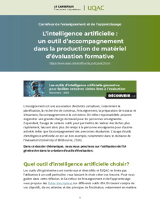Carrefour de l'enseignement et de l'apprentissage. (2024). L'intelligence artificielle : un outil d'accompagnement dans la production de matériel d'évaluation formative. Carrefour de l'enseignement et de l'apprentissage, Université du Québec à Chicoutimi.