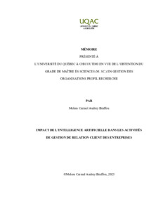 Braffou Melem Carmel Audrey. (2025). Impact de l’intelligence artificielle dans les activités de gestion de relation client des entreprises. Mémoire de maîtrise, Université du Québec à Chicoutimi.