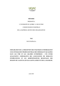 Ka Moustapha. (2025). Exploration de la perception des politiques d’immigration sur l’intégration professionnelle des immigrants qualifiés dans les PME et les grandes entreprises : une étude qualitative comparative des associations de migrants d’employeurs et les administrateurs régionales des régions du Saguenay, du Bas-Saint-Laurent et de la Mauricie. Mémoire de maîtrise, Université du Québec à Chicoutimi.