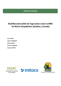 Ce rapport synthèse présente les principaux résultats issus d’une recherche qualitative réalisée grâce à la collaboration entre une équipe de recherche de l’Université du Québec à Chicoutimi et la municipalité régionale de comté de Maria-Chapdelaine (région administrative du Saguenay-Lac-Saint-Jean, Québec, Canada) dans les années 2023 et 2024. L’étude avait pour objectif d’identifier l’évolution des modèles agricoles présents sur le territoire de la MRC selon l'approche théorique de la multifonctionnalité de Wilson (2009).