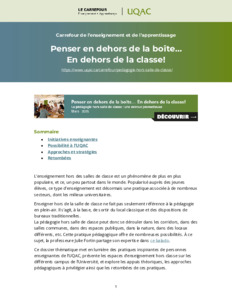 L'équipe pédagogique du Carrefour de l'enseignement et de l'apprentissage. (2025). Penser en dehors de la boîte... En dehors de la classe! La pédagogie hors salle de classe : une avenue prometteuse. Carrefour de l'enseignement et de l'apprentissage, Université du Québec à Chicoutimi.