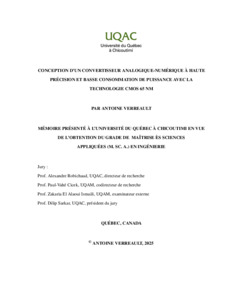 Verreault Antoine. (2025). Conception d’un convertisseur analogique-numérique à haute précision et basse consommation de puissance avec la technologie CMOS 65 nm. Mémoire de maîtrise, Université du Québec à Chicoutimi.