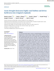 Leclerc Martin, Ditmer Mark A., Stoner David C., Wang Panshi, Sexton Joseph O., Hersey Kent R. et Carter Neil H.. (2025). Acute drought desiccates highly used habitat and drives herbivores into irrigated croplands. Ecological Applications, 35, (7), e70126.