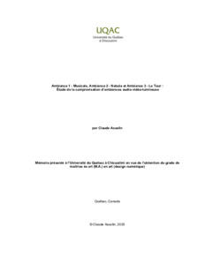 Asselin Claude. (2025). Ambiance 1 - Musicale, Ambiance 2 - Nebula et Ambiance 3 - Le Tour : Étude de la comprovisation d’ambiances audio-vidéo-lumineuse. Mémoire de maîtrise, Université du Québec à Chicoutimi.