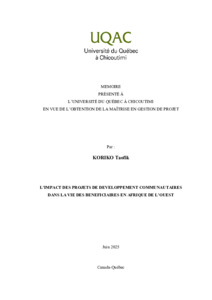 Taofik Koriko. (2025). L’impact des projets de développement communautaires dans la vie des bénéficiaires en Afrique de l’Ouest. Mémoire de maîtrise, Université du Québec à Chicoutimi.