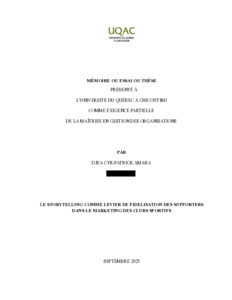 Djea Cyr-Patrick Amara. (2025). Le storytelling comme levier de fidélisation des supporters dans le marketing des clubs sportifs. Mémoire de maîtrise, Université du Québec à Chicoutimi.