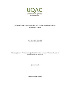 Dallaire David. (2025). Fragments d’un territoire : la trace comme matière d’installation. Mémoire de maîtrise, Université du Québec à Chicoutimi.