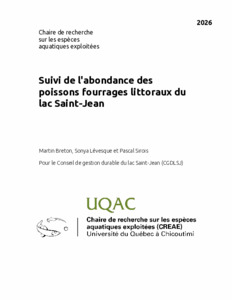 Breton Martin, Lévesque Sonya et Sirois Pascal. (2025). Suivi de l'abondance des poissons fourrages littoraux du lac Saint-Jean. Chaire de recherche sur les espèces aquatiques exploitées, Conseil de gestion durable du lac Saint-Jean (CGDLSJ), Université du Québec à Chicoutimi.