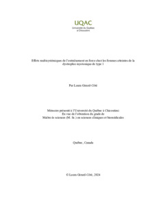 Girard-Côté Laura. (2024). Effets multisystémiques de l’entraînement en force chez les femmes atteintes de la dystrophie myotonique de type 1. Mémoire de maîtrise, Université du Québec à Chicoutimi.