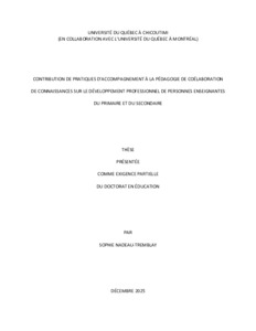 Nadeau-Tremblay Sophie. (2025). Contribution de pratiques d’accompagnement à la pédagogie de coélaboration de connaissances sur le développement professionnel de personnes enseignantes du primaire et du secondaire. Thèse de doctorat, Université du Québec à Chicoutimi.