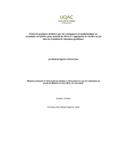 Mbakob Ngontio Ahmed Aldo. (2026). Étude de pratiques déclarées par des enseignants en mathématique au secondaire au Québec pour soutenir les élèves à s’approprier les savoirs en jeu dans la résolution de situations-problèmes. Mémoire de maîtrise, Université du Québec à Chicoutimi.